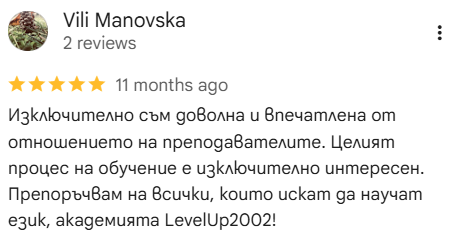 Този подход се оказва изключително успешен. Учениците не само усвояват езика, но се научават да говорят уверено, да мислят критично и да се изразяват със себеуважение. Това е обучение, което оставя следа. Модерната база в сърцето на Пловдив, уютната обстановка и личното отношение, с което се посреща всеки курсист, превръщат „Level Up 2002“ в място, където ученето е удоволствие, а езикът – естествена част от живота.